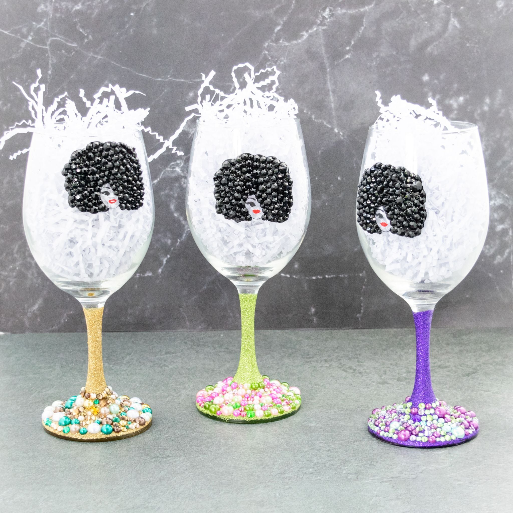 Crafted with care and creativity, the Afro Women Pearl and Rhinestone Stemmed Wine Glasses is a masterpiece that embodies elegance, empowerment, and celebration!